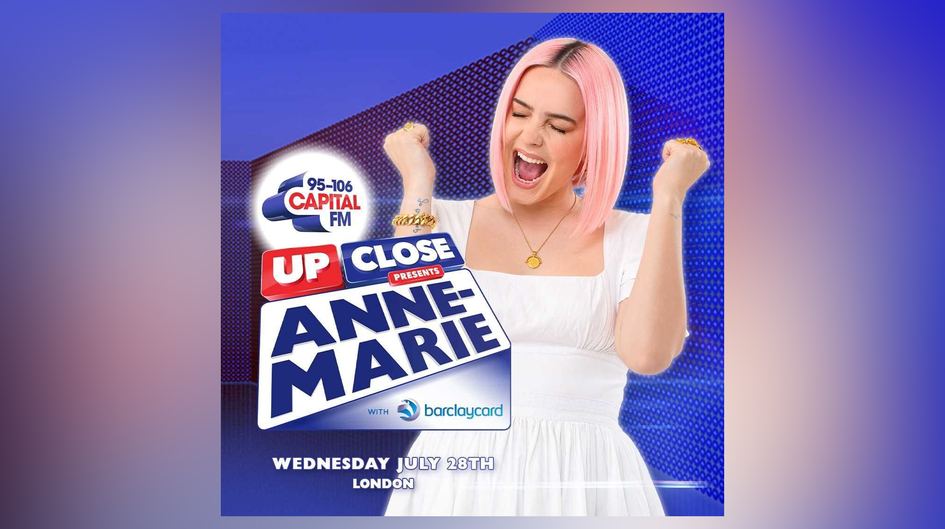 Listen to Capital for the chance to win exclusive access to Capital Up Close presents Anne-Marie with Barclaycard, plus look out for the Barclaycard prize draw for additional chances to win.