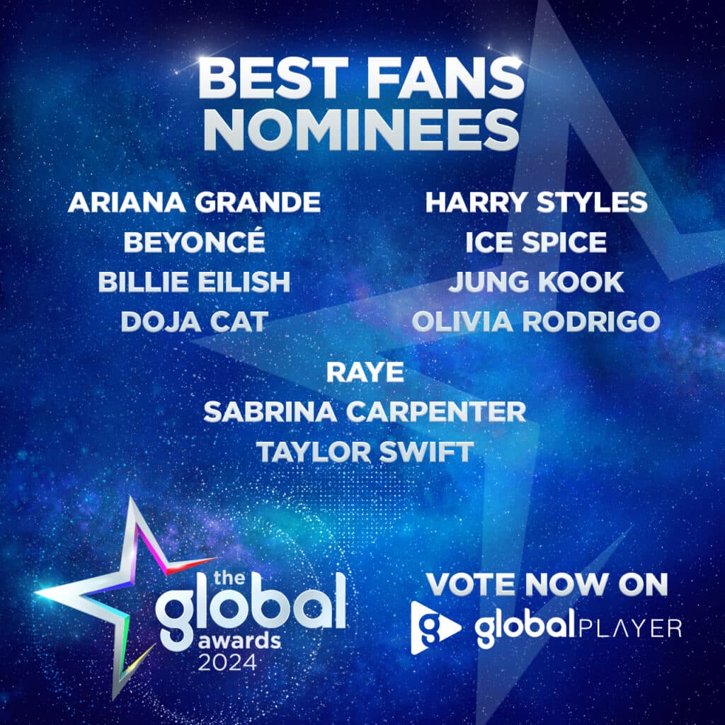 Listeners can vote for the Best Fans category on Global Player now!