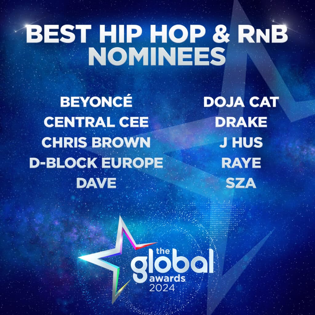 After a sensational year, RAYE leads the nominations for The Global Awards, receiving six nominations across six different categories. International pop superstars Taylor Swift and Olivia Rodrigo follow, with four nominations each, as do Calvin Harris, Doja Cat, Ed Sheeran, Dave, and Tate McRae.
