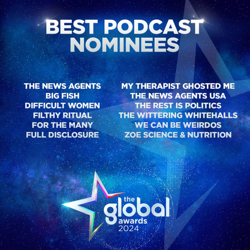 Shortlisted podcasts for The Global Awards include ‘The News Agents’, ‘Big Fish with Spencer Matthews’, ‘The Rest Is Politics’, ‘Rachel Johnson’s Difficult Women’, ‘Filthy Ritual’ and ‘The Wittering Whitehalls’. The Classical Music category includes teenage singing sensation and Britain’s Got Talent star Malakai Bayoh, cellist Abel Selaocoe, and organist and conductor Anna Lapwood.