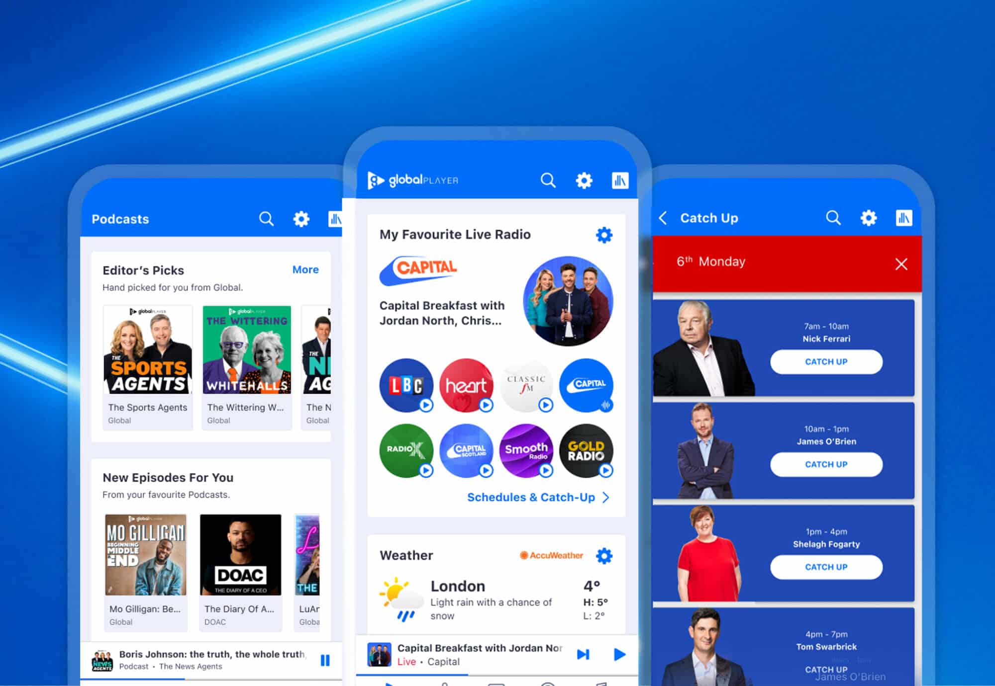 Global Player opens up a world of entertainment at your fingertips, so you can enjoy all of Global’s radio brands, catch up on your favourite shows, rewind live radio, listen to award-winning podcasts and browse expertly-curated live playlists.