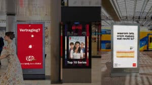 Mink: Je moet Digital Out-of-Home voor jou laten werken en met de campagne denken vanuit het medium en het doel. Door te draaien aan de knoppen van locatie, tijd en doelgroep en mediadruk zien wij effectievere campagnes ontstaan. Zo zagen wij dat Netflix op viel met hun doortastende ‘always-on’ campagne, waarbij ze gedurende het gehele jaar op Digital Out-of-Home hun dagelijkse top 10 uitlichtte en direct hun merk laadde. Hema daarentegen speelde slim in op de crompouse trend door op dezelfde dag hun social media-posts door te vertalen naar onze digitale NS-schermen. Hierdoor vergrootte ze hun bereik en zichtbaarheid.
